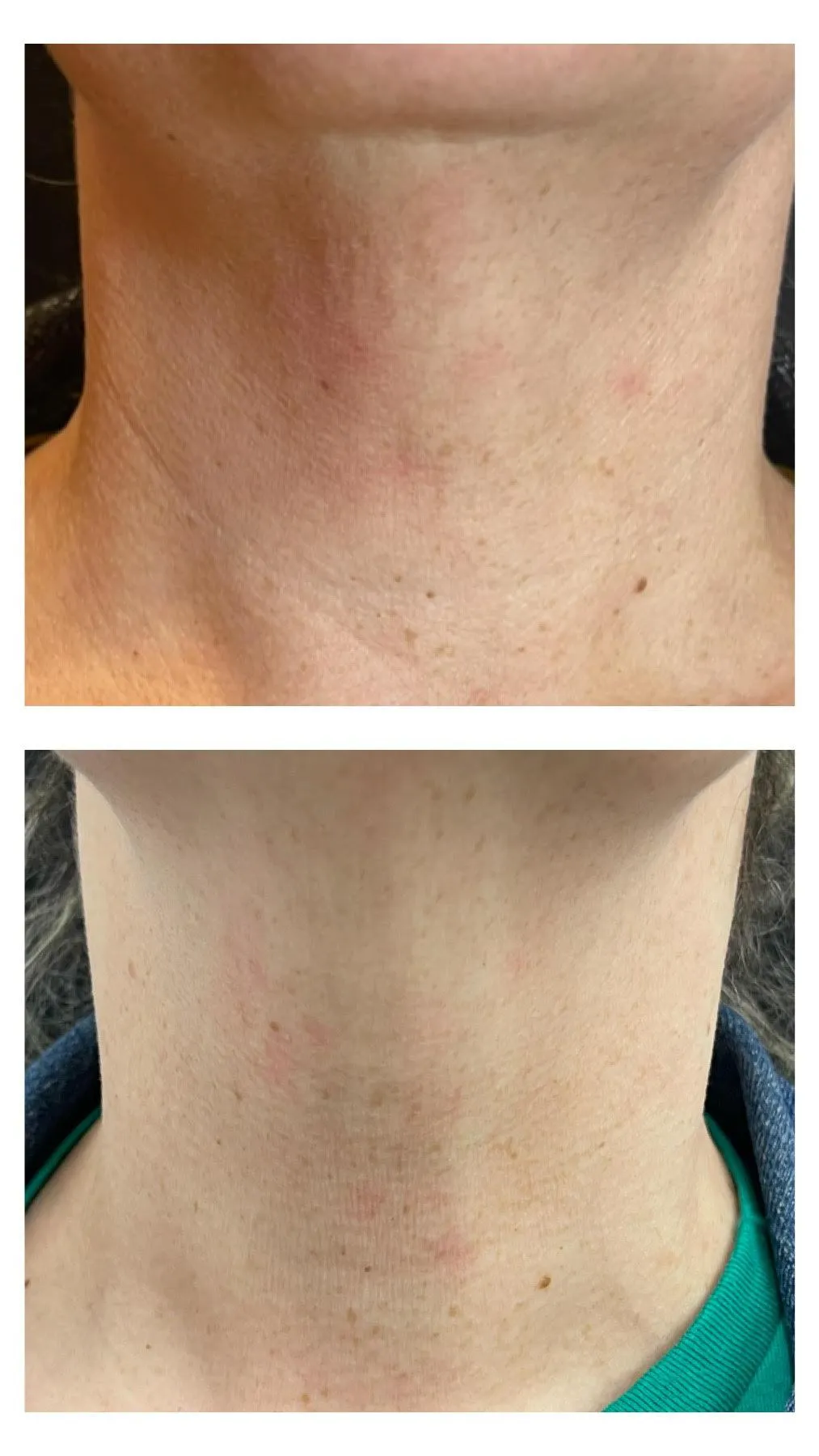 Neck correct is a treatment using injections with Radiesse and PDO threads to improve neck skin texture and lines. Radiesse and PDO threads stimulate collagen within 3-8 weeks. Results last up to 2 years.
